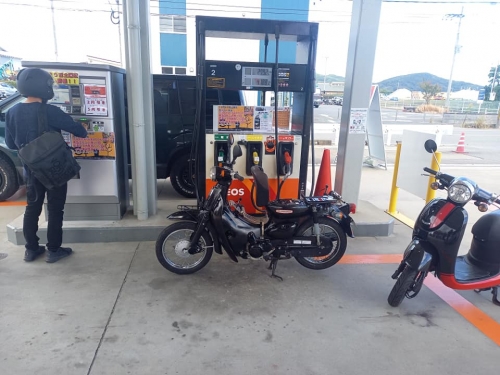 危険予測運転・ガソリン給油OKです。 サーフィンしているN様「海へ行きたいです」とのプラン、二見ヶ浦に到着。