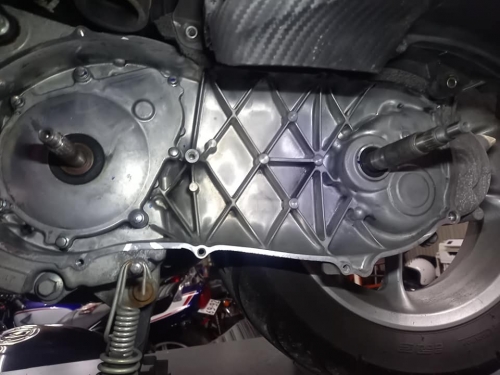 N-MAX1552021-11-08 at 15:00PMS様N-MAX155、新車購入後のVベルト交換時期です。 S様のリクエストで、駆動系をKN企画製品にします。 ケースガスケットも新品交換。 ウエイトローラーグラム数は、オーナー様と決めます。 ベルトカス等で真っ黒に汚れたケース内部、綺麗にします。