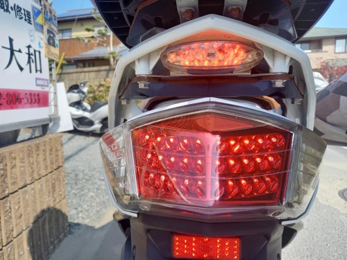 キビキビ走るN-MAX155、良いですね。 ーーーーーーーーーーーーー ここからは、台湾YAMAHAシグナスX Fi 販売車両の御紹介です。 前後タイヤ・オイル・バッテリー等、新品交換します。 1度エンジン腰上を開け、メンテナンスしています。 前オーナー様が当店にて純正購入後、大切にカスタムされていました。 反射板もLED入り、ブレーキ連動で光ります。 電圧計など付いており、ウインカーやライト類はフルLED化。 燃料ポンプは強化タイプ、カメレオンファクトリー製。 リヤサス他カスタム多数、駆動系もメンテナンスされています。