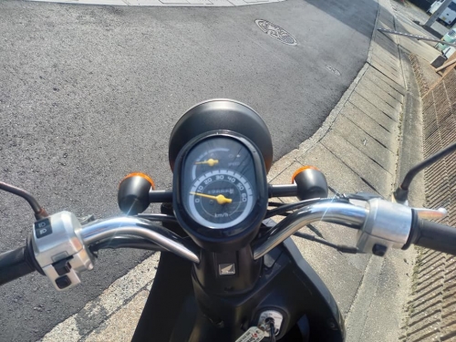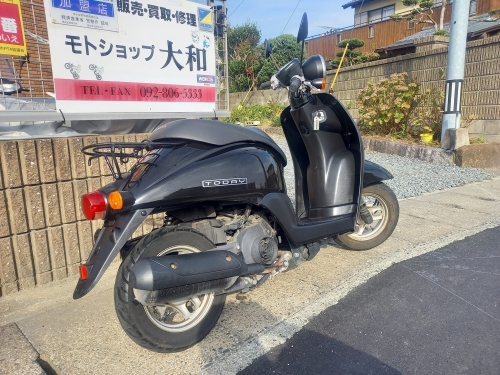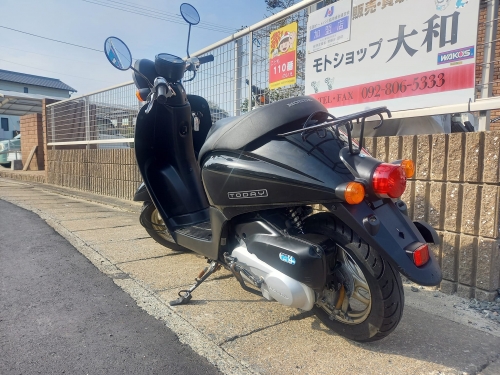 それから、販売車両として入荷の原付の御紹介です。 低燃費4サイクル、エンジン音の静かなトゥデイAF67。 走行距離12.666Km。 九大伊都キャンパス近郊、ピュ~と試乗してみました。 有ると便利なサイドスタンド付いています。