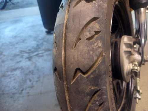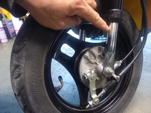 前後タイヤは純正、走行距離に合う減り具合です。 安心の為、前後タイヤ&エアーバルブはダンロップ新品交換。 レッツ4によく有るフォークの錆、全くありません。