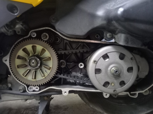 只、駆動系はリコール対策品に新品交換しました。 整備完了、試乗点検へ行きます。 イエロー車体は夜間走行も安心、周りから認識されやすいです。