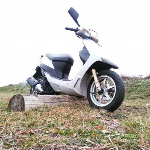 ★50ccスクーターで九州一周★2022-02-04 at 11:23AMスズキZZ、軽く綺麗に仕上げたついでに散歩。 アンダーカウル2連ダクト、今時の原付にこの様なデザインは皆無。 当時の原付、デザインに遊び心が有って格好良い???