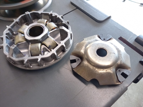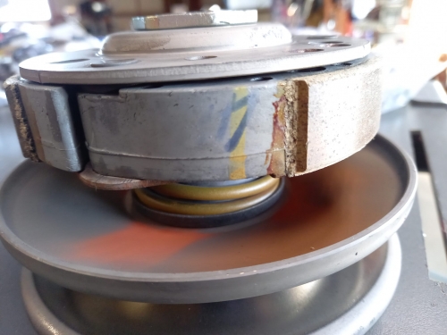 綺麗なクラッチシューですが、スタート発進が良くなる様に小細工。