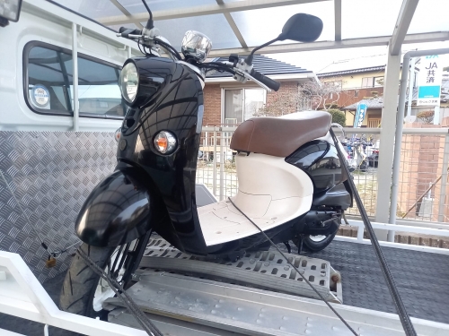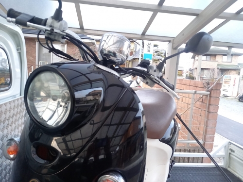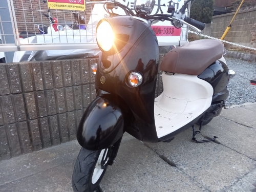 ★店頭に在庫ゼロでも大丈夫★2022-02-18 at 18:38PM九大生、自転車で御来店「ビーノが欲しい」との事です。 当店にビーノ中古車の在庫は無し、しかし何とかしてあげたいものです。 ーーーーーーーーーーーー 御好みや御予算を聞き、要望に沿ったVINOを全国から探し出しました。 次の日、九州高速道を使って仕入れ完了。 「行動フットワークの迅速&軽快は大切」と考えます。 インジェクションVINO(SA37J)ブラック色です。