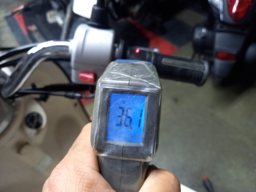 エンジン始動、ハンドルの表面温度は直ぐに上がってポカポカ。