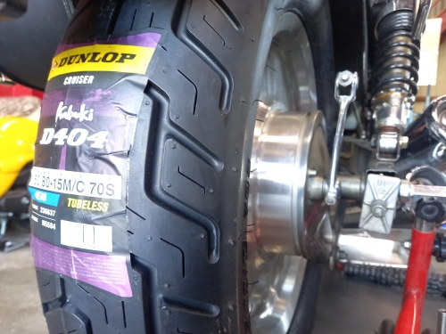 前後タイヤはダンロップD404カブキ。