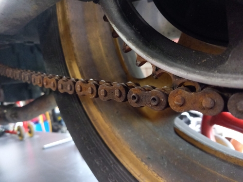 サビサビのチェーンやスプロケット、ハブダンパーも・・・。