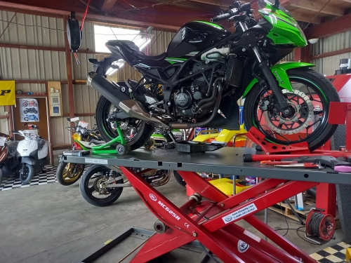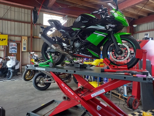 タクト&ジョグ新車、売約となりました。 納車時は「事故回避方法を学ぶ★2時間練習」開催。 購入者御本人からもですが、お父様お母様から沢山リクエストされます。 ーーーーーーーーーーーー 「色々と内容や趣旨を調べた結果、おたくで路上教習を御願いしたい」 とても有難い御言葉。 休憩を入れ、無理なく分かりやすく「危険予測運転練習」させていただきます。 ーーーーーーーーーーーー それではNinja250SL、メンテナンス開始。