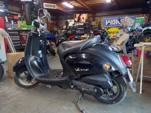 何気ない一言2023-11-28 at 11:11AM「予算が限られているけど、オートバイに乗りたい」との御相談分。 納車整備+名義登録を済ませ、いよいよ納車です。 「仕事と家庭、そして更に1つの楽しみが出来ました♪」との事。 こういう何気ない御言葉、商いをする以前に嬉しく感じます。 初乗り、御帰りになる御客様を御見送りします。 それでは、転倒によるエンジン不動修理のビーノ。