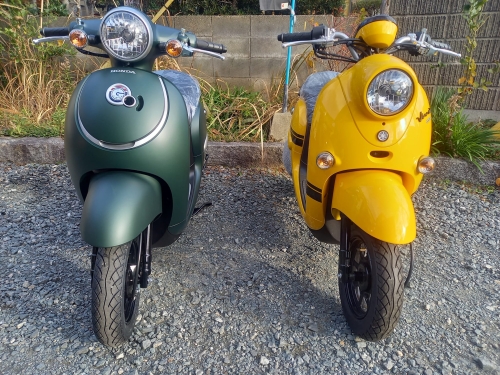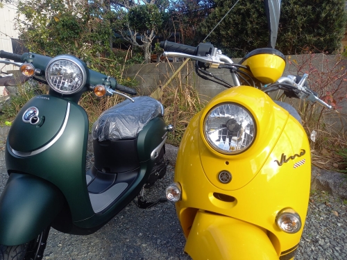 ビーノと比較♪ 黄色ビーノ新車を購入に来ていた方が、ジョルノ購入に来た方に 「おっ!!!自分もここに買いに来たん???」と。 ビーノ購入者様、ジョルノ購入に来た方とクラスメイト。 御2人共、大学内やバイト先でおすすめバイク店は「モトショップ大和」と聞いたとか。 紹介して下さった方々・・・有難い事です。