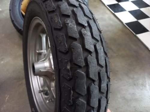 サスペンション構造、グロムと似ていますね。 現在の前後タイヤはDUNLOP K180。