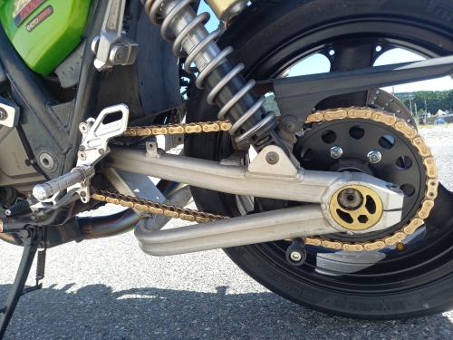 チェーンは江沼ThreeD「Z」ゴールド QX2シールタイプ 前後スプロケット/ナット類は、敢えて純正新品。 車検整備前と比較しながら運転、格段に良くなりました♪ 前サスが良くなると…。 今度は、純正リアサスペンションのO/H、社外交換をしたいものです。 その辺りは、ツーリングしながら後々考えれば良いと思います。 ーーーーーーーーーー オーナー様>ZRX1200R★いつでも納車可能です★ 0 コメント : コメントを書く :