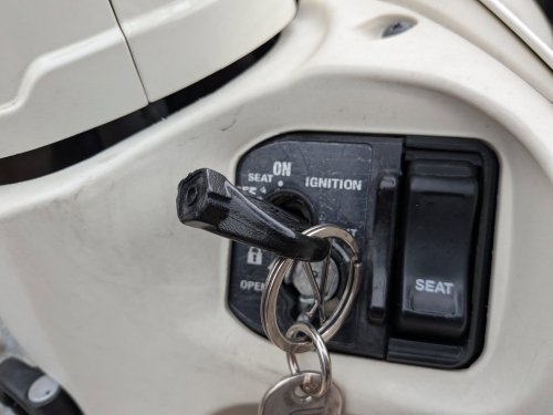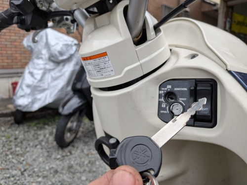 学生の無料アフターフォロー★何年経ってもOK★2025-12-19 at 10:01AM当店にて、2年前にビーノ購入されていた女子大生が御来店。 「昨日から鍵が刺さりにくくなり、ON/OFFもやりずらいです」と。 キーが刺さりにくいと、バイクに乗れなくて不便です。 キーシリンダーや燃料タンクキャップ、全て交換すると数万円。 さて、原因は何処なのか??? 只、こうなる症状の場合、経験から原因が分かります。 ある事を行い、キーを差し込んでみますとスッと入りました♪